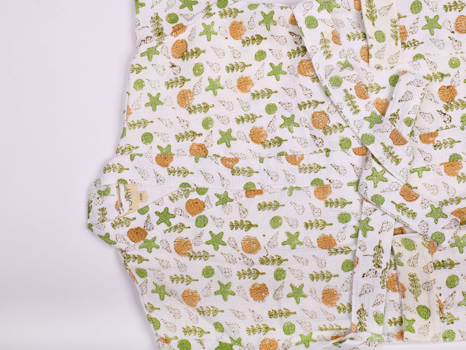 It's beach day everyday with this Nautical bath robe. Be it a swim, or bath time, its waffle texture and pure cotton feel is super luxurious for all our water babies. 100% cotton hand blocked waffle.